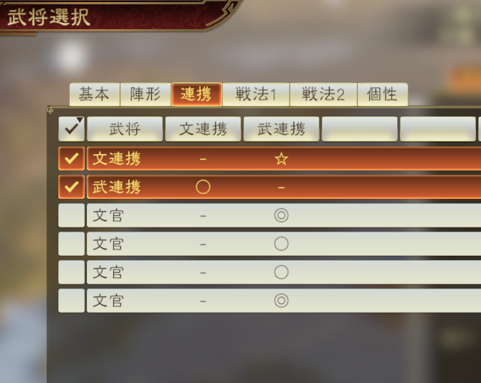 武将の関係性と連携 (補佐による連携率引き上げ前)